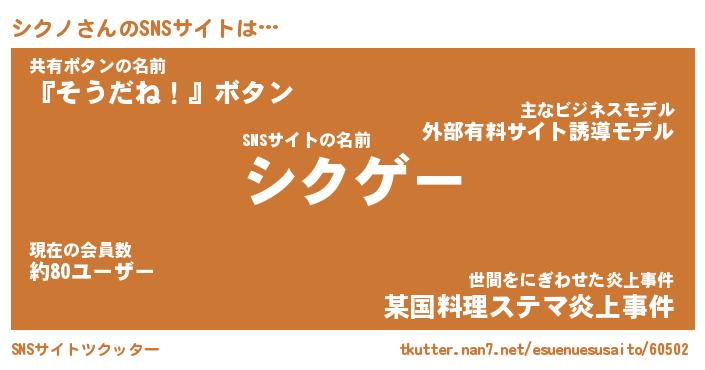 | 男性向けラノベタイトル風あだ名 | 『シクノの憂鬱』 |