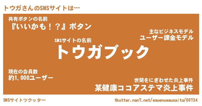 | 男性向けラノベタイトル風あだ名 | 『トウガアートオンライン』 |