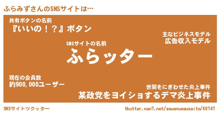 | 肩書あだ名 | 『ふらみず社長』『ふらみず総理大臣』 |
