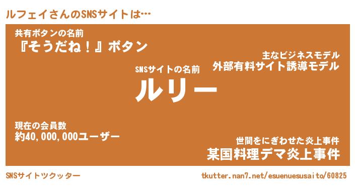 | ヘコむあだ名 | 『ルフふぇ~』『つくし』 |