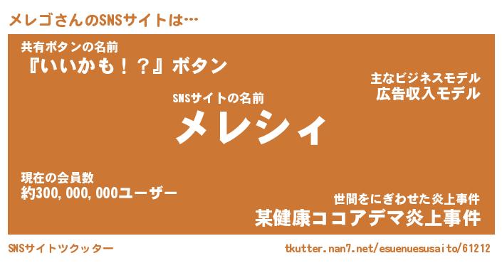 | ヘコむあだ名 | 『メレにー』『酢こんぶ』『メレお』 |