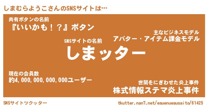 | ヘコむあだ名 | 『しまにー』『酢こんぶ』『しま太郎』 |