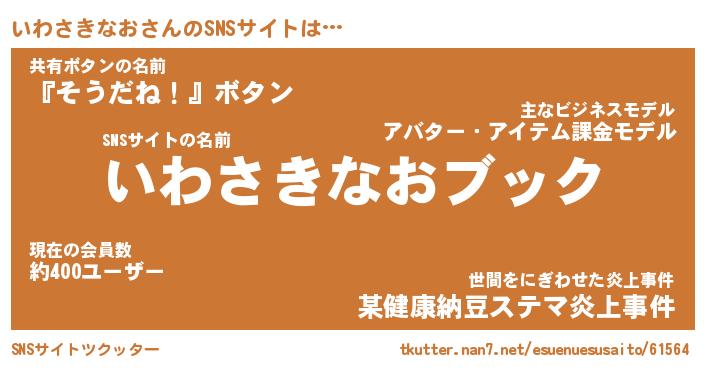 | 胡散臭い通販商品みたいなあだ名 | 『億万長者になれるブレスレット…その名も「いわさきなお」』 |