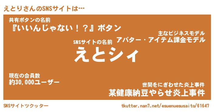 | 肩書あだ名 | 『えとりCEO』『えとり国家主席』 |