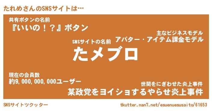 | ヒーロー風カッコイイあだ名 | 『スーパータレメ』『ウルトラたれめマン』 |
