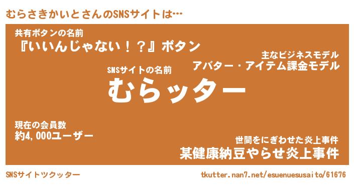 | 男性向けラノベタイトル風あだ名 | 『ムラサキカイトアートオンライン』 |