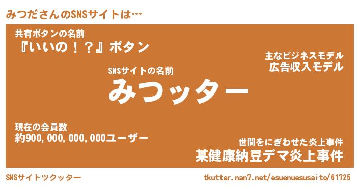 | 胡散臭い通販商品みたいなあだ名 | 『億万長者になれるブレスレット…その名も「みつだ」』 |
