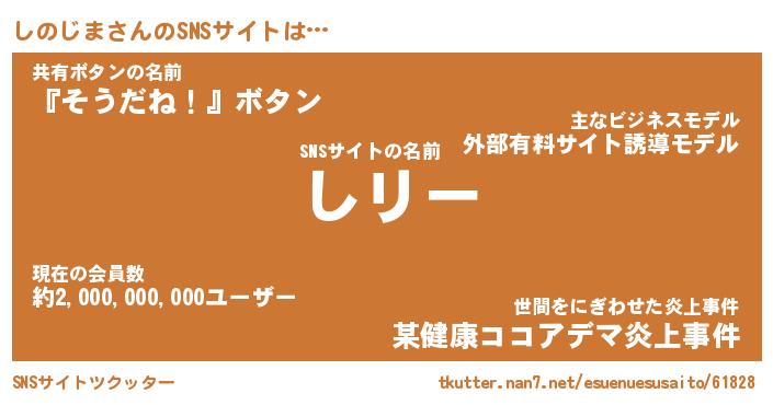 | 肩書あだ名 | 『しのじま社長』『しのじま大統領』 |