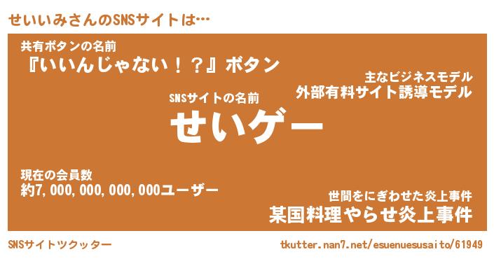 | 肩書あだ名 | 『せいいみ社長』『せいいみ大統領』 |