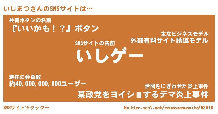 | ファンタジー風あだ名 | 『イシフェル』『エターナルイシマツー』 |