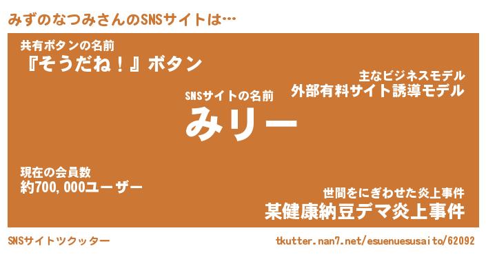 | ヘコむあだ名 | 『みずにー』『豆乳』『みずっぺ』 |