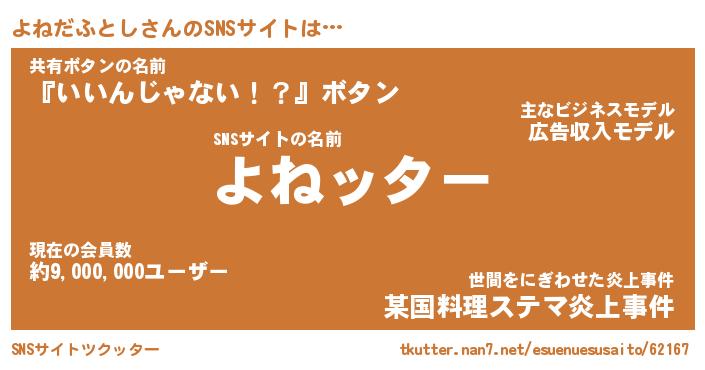 | 胡散臭い通販商品みたいなあだ名 | 『億万長者になれる水晶球…その名も「よねだふとし」』 |