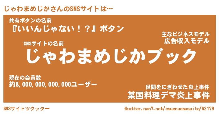 | 肩書あだ名 | 『じゃわまめじか社長』 |