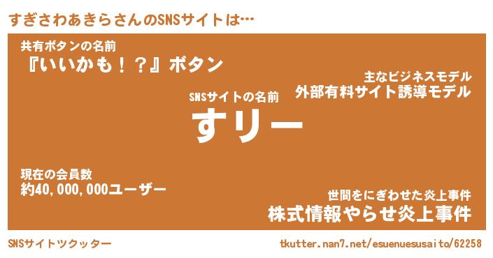 | 意味不明あだ名 | 『ペロリンすぎさわあきら』 |