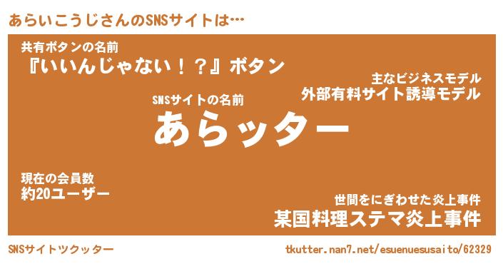 | ヘコむあだ名 | 『あらにー』『酢こんぶ』『あらを』 |