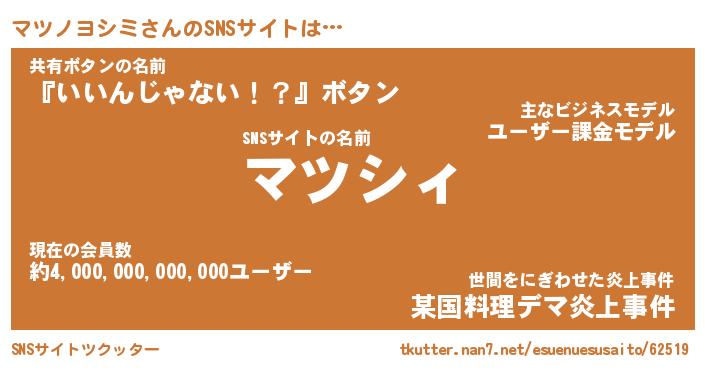 | 肩書あだ名 | 『マツノヨシミ店長』『マツノヨシミ塾長』 |