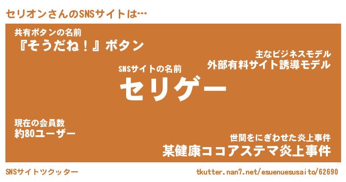 | ヘコむあだ名 | 『セリもー』『なまこ酢』『セリお』 |