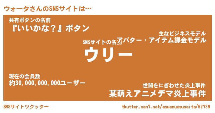 | 男性向けラノベタイトル風あだ名 | 『ウォータの憂鬱』 |