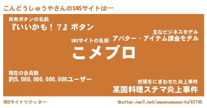 | 肩書あだ名 | 『こんどうしゅうや御曹司』 |