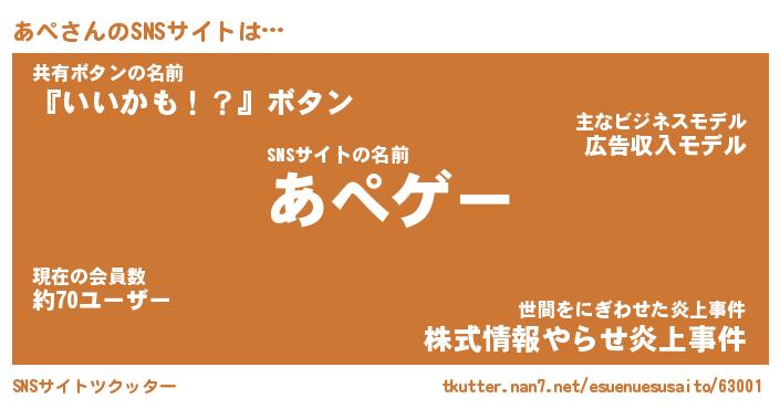 | 肩書あだ名 | 『あぺ社長』『あぺ国家主席』 |