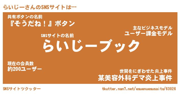 | 意味不明あだ名 | 『ペロリンらいじー』『永久保存らいじー』 |