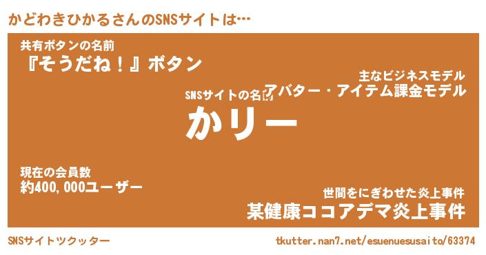 | 胡散臭い通販商品みたいなあだ名 | 『モテモテ間違いなし霊験あらたかなお札…その名も「かどわきひかる」』 |