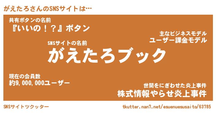 | 肩書あだ名 | 『がえたろ社長』『がえたろ大統領』 |