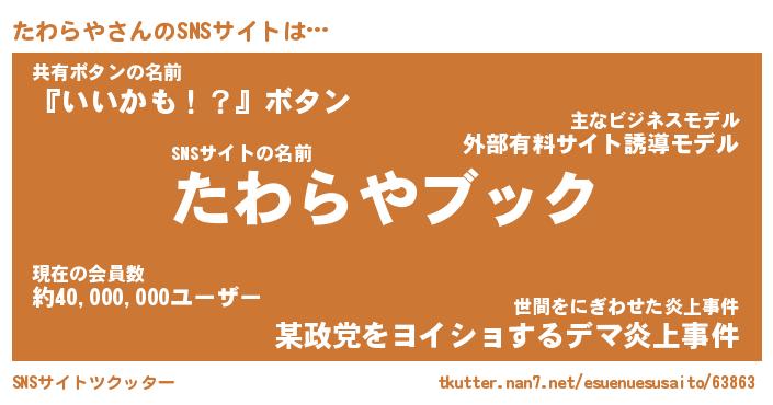 | ツイッター | たわらやさんのツイッターID『dendenmushi_star』 |
