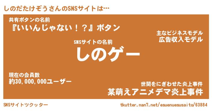 | 肩書あだ名 | 『しのだたけぞう御曹司』 |