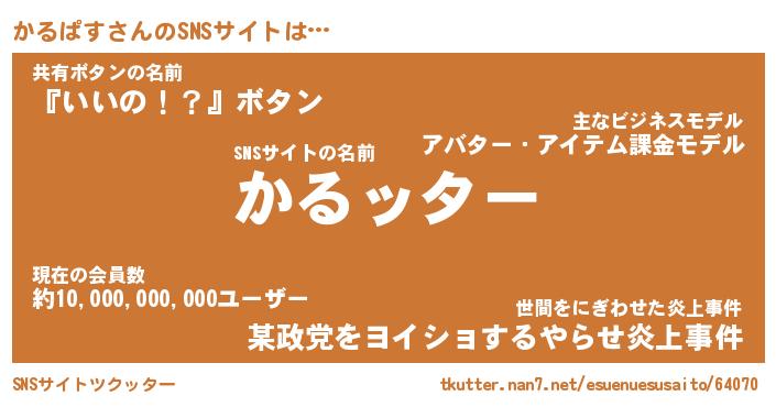 | 胡散臭い通販商品みたいなあだ名 | 『億万長者になれる霊験あらたかなお札…その名も「かるぱす」』 |
