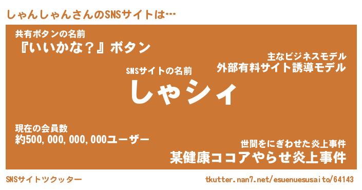 | ヒーロー風カッコイイあだ名 | 『スーパーシャンシャン』『幻影騎士シャ』 |