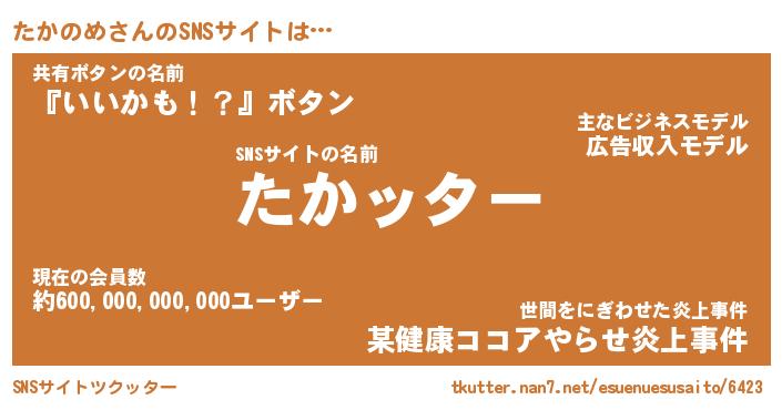 | 胡散臭い通販商品みたいなあだ名 | 『億万長者になれる水晶球…その名も「たかのめ」』 |