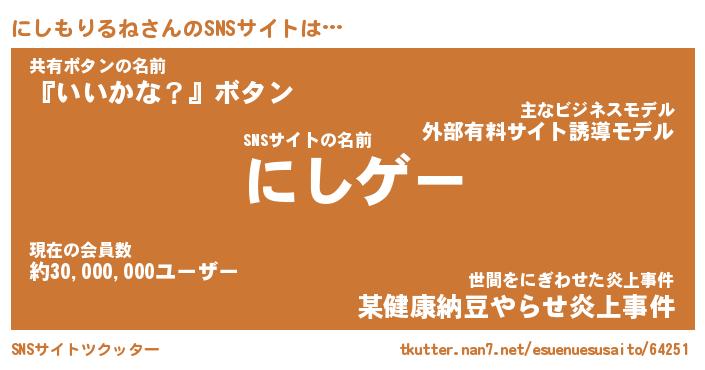 | ファンタジー風あだ名 | 『ニシフェル』『ファントムニシス』 |