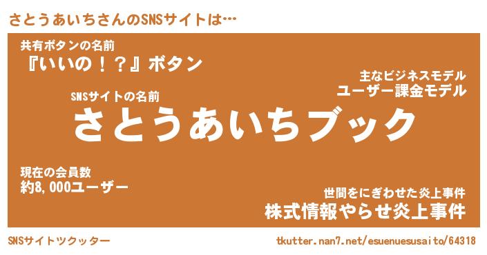 | 肩書あだ名 | 『さとうあいち社長』『さとうあいち班長』 |