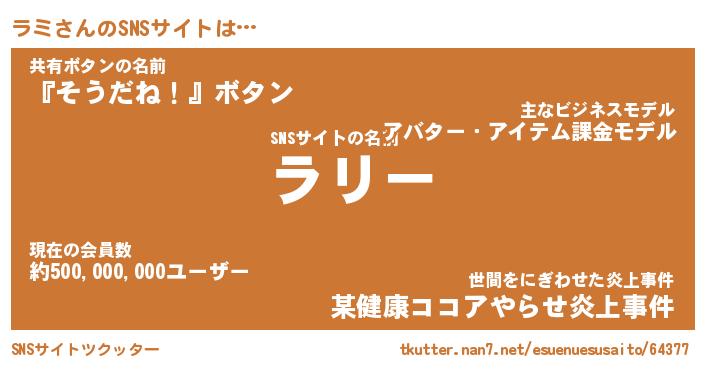 | ポケモン風あだ名 | 『ラミチュウ』『ラミダネ』『ヒラミ』 |