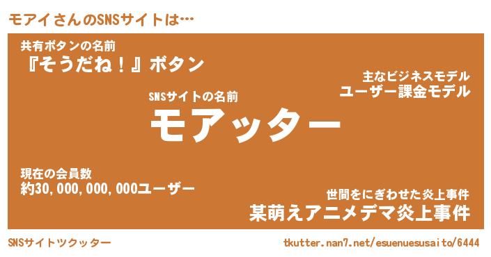 | 男性向けラノベタイトル風あだ名 | 『モアイアートオンライン』 |