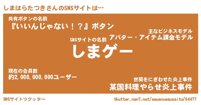 | 胡散臭い通販商品みたいなあだ名 | 『必ず成功する霊験あらたかなお札…その名も「しまはらたつき」』 |
