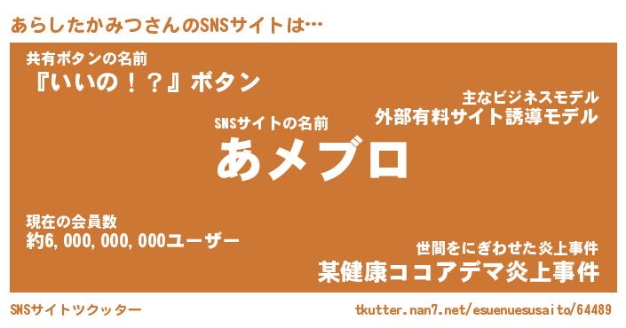 | 肩書あだ名 | 『あらしたかみつCEO』 |