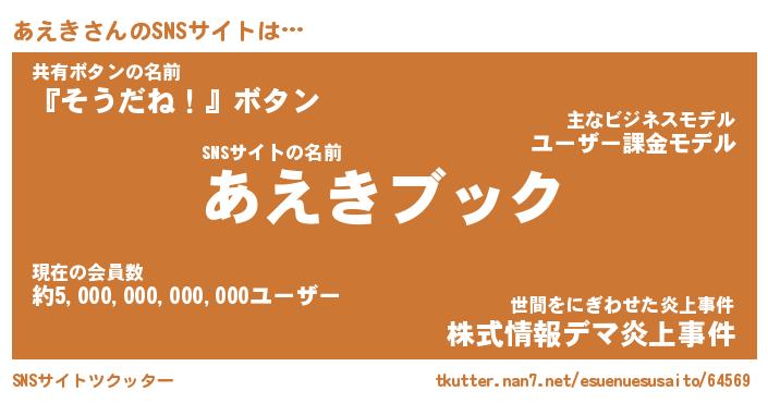 | ヒーロー風カッコイイあだ名 | 『スーパーアエキ』『ウルトラあえきマン』 |