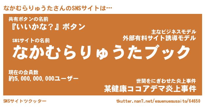 | 肩書あだ名 | 『なかむらりゅうたCEO』 |