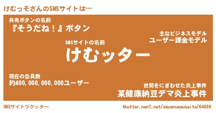 | 肩書あだ名 | 『けむっそ社長』『けむっそ大統領』 |