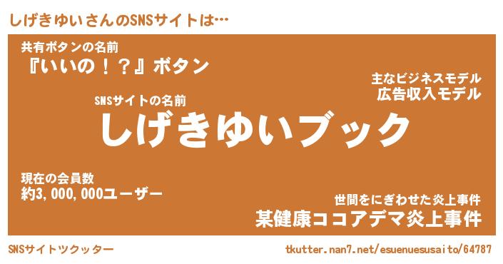 | 肩書あだ名 | 『しげきゆい店長』『しげきゆい総理大臣』 |