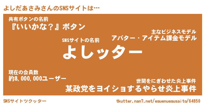 | ヒーロー風カッコイイあだ名 | 『スーパーヨシダアサミ』『黄金騎士ヨシ』 |