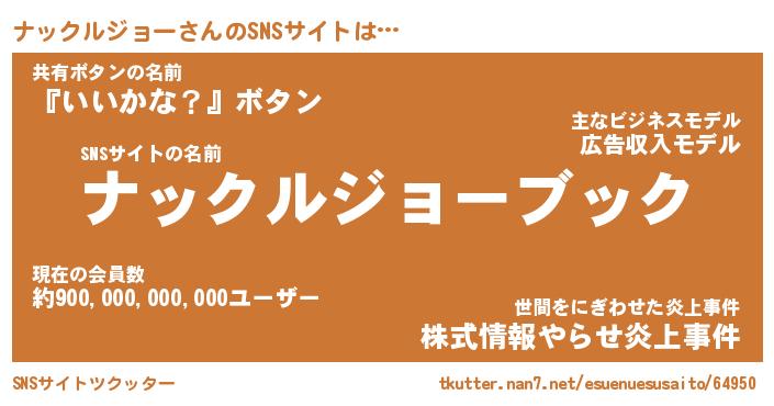 | 胡散臭い通販商品みたいなあだ名 | 『億万長者になれるブレスレット…その名も「ナックルジョー」』 |