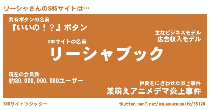 | 意味不明あだ名 | 『ペロリンリーシャ』『永久保存リーシャ』 |