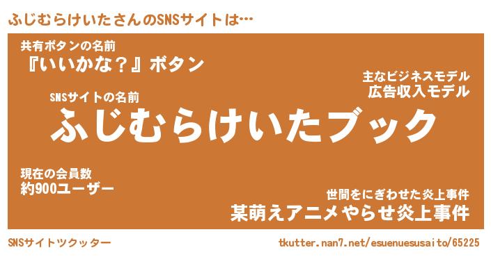 | 男性向けラノベタイトル風あだ名 | 『フジムラケイタアートオンライン』 |