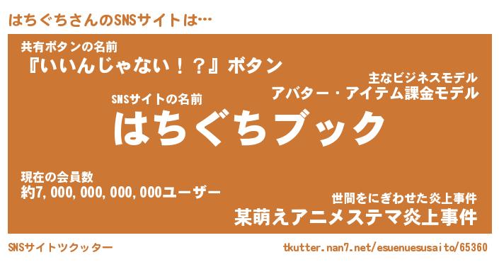 | 意味不明あだ名 | 『ペロリンはちぐち』『永久保存はちぐち』 |