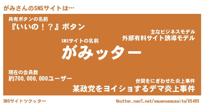 | 胡散臭い通販商品みたいなあだ名 | 『億万長者になれるブレスレット…その名も「がみ」』 |