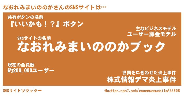 | 肩書あだ名 | 『なおれみまいののか社長』 |