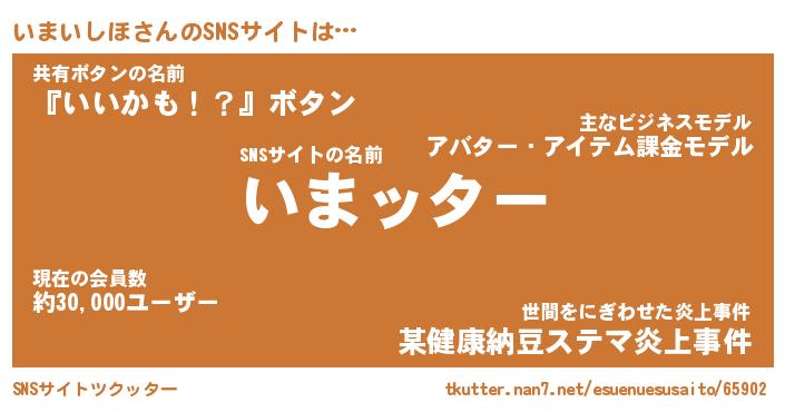 | ポケモン風あだ名 | 『イマチュウ』『イマイダネ』 |
